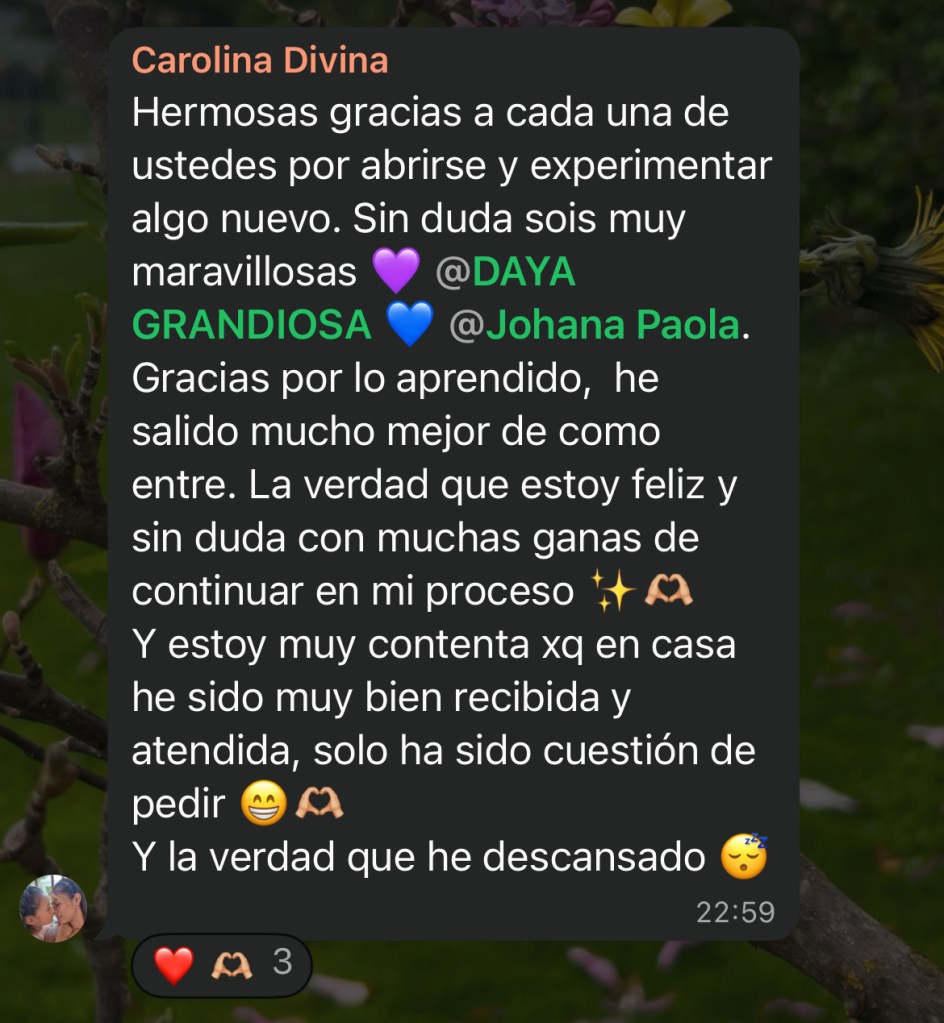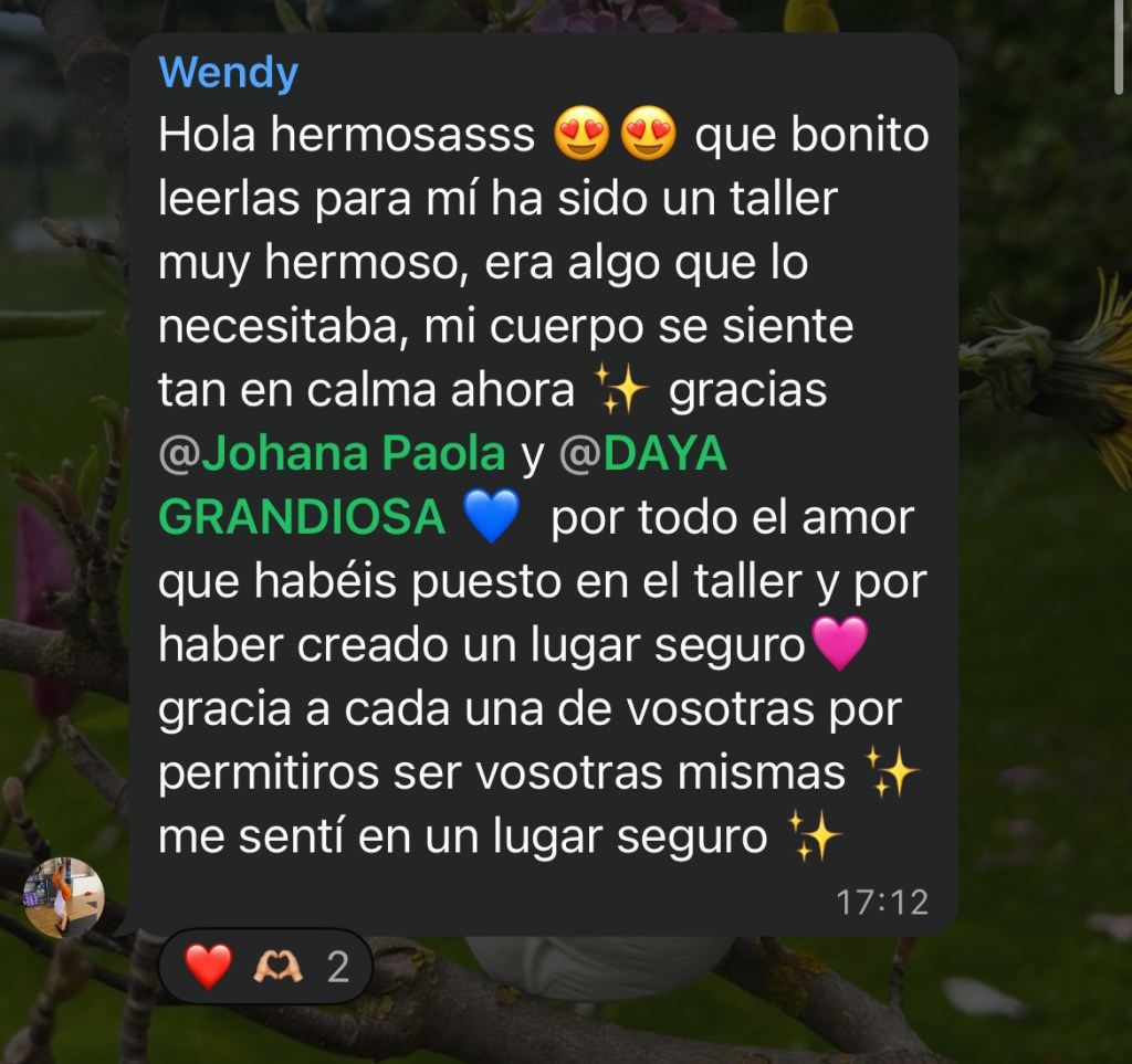 Mi nombre es Dayanna Chica soy una muchacha bien chingona que gracias a la vida voy descubriéndome cada día más y accediendo a mi esencia, desde que tengo memoria me ha gustado ayudar a las personas y a través de mi maravilloso proceso Dios me ha guiado a ayudar a mujeres que quieran empezar a ser protagonistas de su vida. Para que accedan a lo que ya son, pero olvidaron que eran.